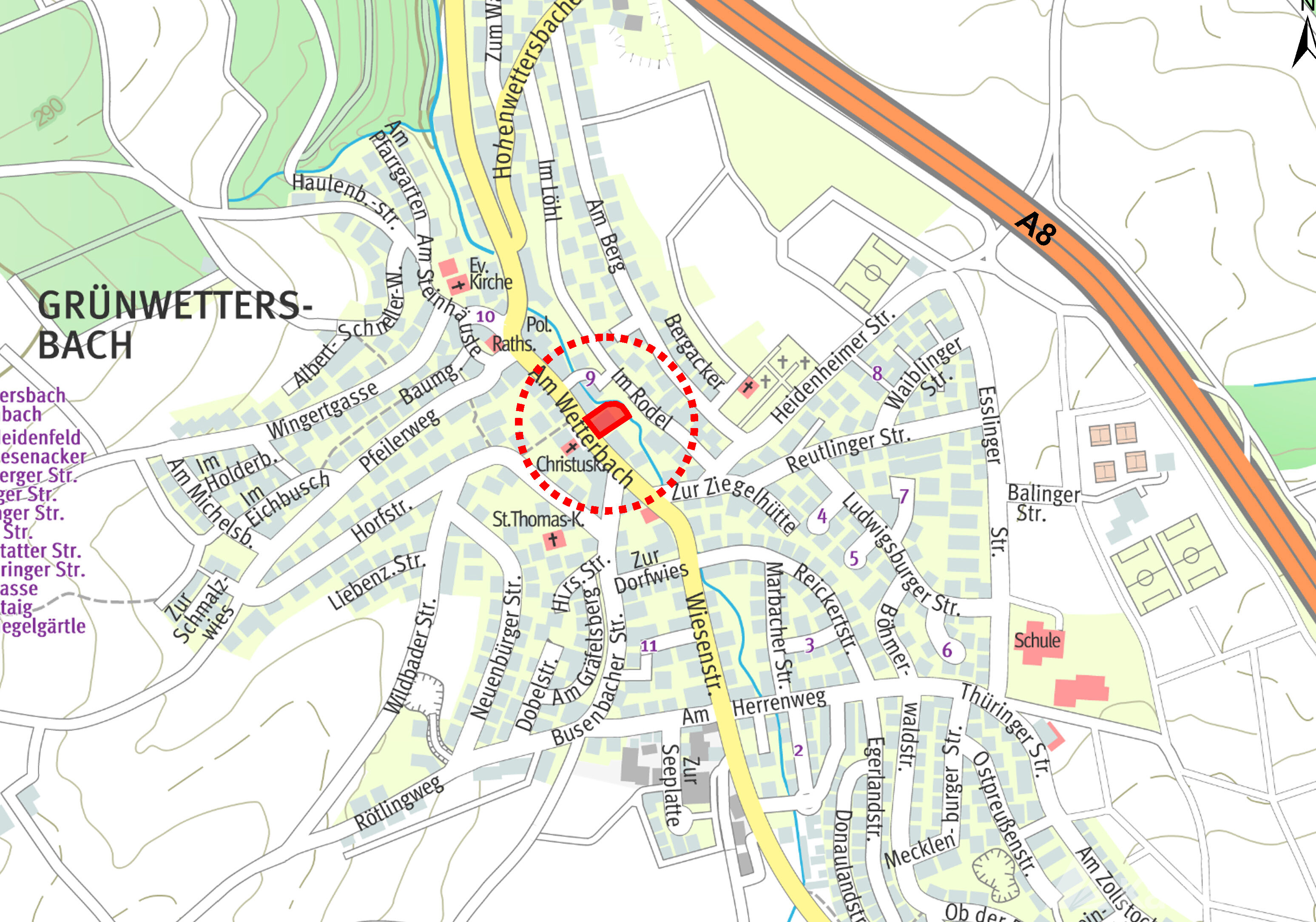 Um diese Sanierungsziele dauerhaft sichern zu können, ist die Aufstellung eines Bebauungsplans für den historischen Ortskern von Grünwettersbach erforderlich.