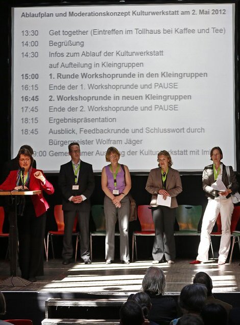 Herausforderungen und Ziele einer Kulturstadt wie Karlsruhe können nur gemeistert werden in einer engen Kooperation des Kulturausschusses und des städtischen Kulturamts mit den Kulturschaffenden der Stadt. Daher war die Erarbeitung des Kulturkonzeptes von vorn herein als ein ergebnisoffener Prozess mit vielen Beteiligten aus Politik, Kunst, Kultur, Wissenschaft und Gesellschaft angelegt. Dieser Prozess wird in einem Abschnitt ausführlich dargestellt, um zu verdeutlichen, in wie vielen Gesprächen, Symposien und Workshops sowie in zahlreichen Sitzungen des Kulturausschusses die Grundaussagen dieses Konzeptes erarbeitet wurden.