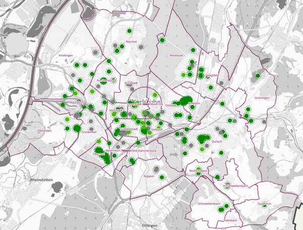 Mit dem Photovoltaik-Dashboard der Stadt Karlsruhe können sie sich umfassend über jede einzelne Solaranlage der Stadt sowie der städtischen Gesellschaften informieren.