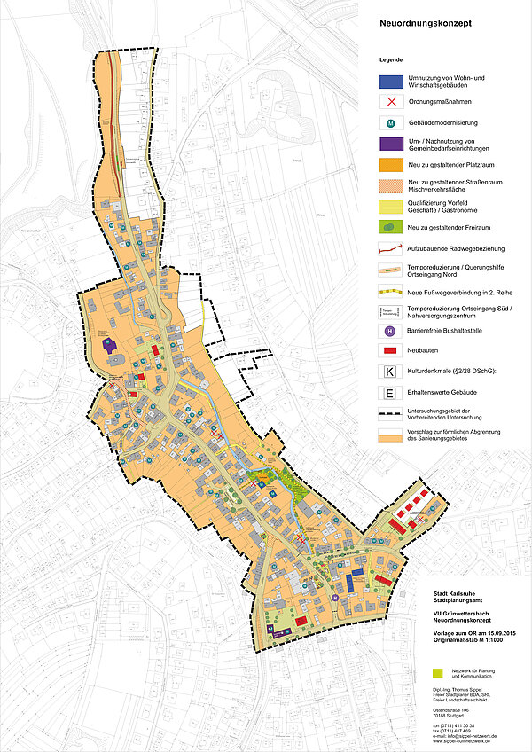 Am 24. November 2015 hat der Gemeinderat das Sanierungsgebiet Grünwettersbach förmlich festgelegt und als Satzung beschlossen. Mit der öffentlichen Bekanntmachung der Satzung am 4. Dezember 2015 im Stadtanzeiger wird die Satzung rechtskräftig. Das Gebiet umfasst circa 22 Hektar. Die Laufzeit des Sanierungsverfahrens endet gemäß des aktuellen Beschlusses des Gemeinderates am 31. Dezember 2026.