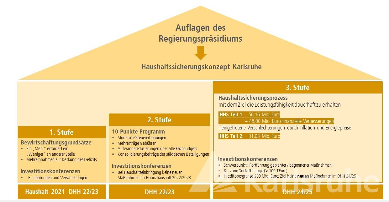 In Sachen Haushaltssicherung (HHS) hat die Stadt Karlsruhe ihre Hausaufgaben gemacht. Doch gestiegene Preise und Löhne zwingen zum Nachsteuern und zu einem zweiten Maßnahmenpaket, um das Ziel der schwarzen Null nicht aus den Augen zu verlieren.