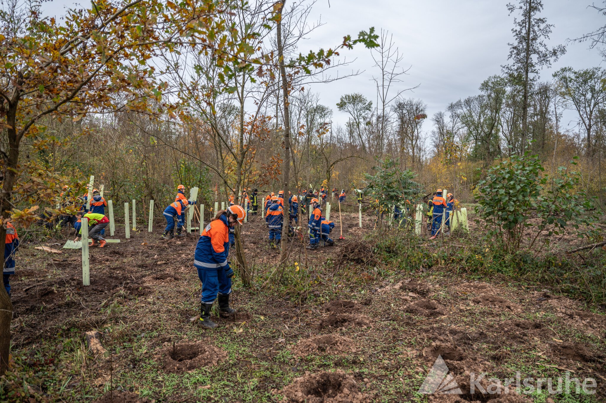Das Thema wurde in Karlsruhe mit großem Engagement umgesetzt. Rund 100 Kinder und Jugendliche aus den Reihen der 16 Freiwilligen Feuerwehren im Stadtgebiet pflanzten gemeinsam mit ihren Betreuerinnen und Betreuern knapp 1 200 Bäume – mehr als ursprünglich geplant. „Zwischenzeitlich ist sogar das Material ausgegangen“, berichtete Stadtjugendfeuerwehrwart Philip Hinz nach der Pflanzaktion am Grötzinger Baggersee, die am vergangenen Wochenende in enger Zusammenarbeit mit dem Forstamt stattfand.