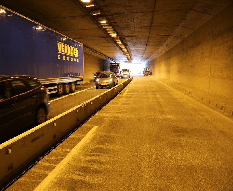 Seit dem Frühjahr 2021 wird der Edeltrudtunnel saniert und modernisiert. Jetzt neigen sich die Bauarbeiten dem Ende zu. Ab Anfang Mai wird der Verkehr durch den rund 600 Meter langen Tunnel wieder normal geführt. Die Geschwindigkeitsbeschränkung auf 50 Stundenkilometer wird hingegen bis Juli aufrechterhalten. Auch die Standstreifen bleiben noch gesperrt. Bis Ende Juni rechnet das Tiefbauamt mit dem Abschluss aller Inbetriebnahmen der neuen Technik. Die Tests an der neu installierten Ausstattung sollen bis dahin abgeschlossen sein.