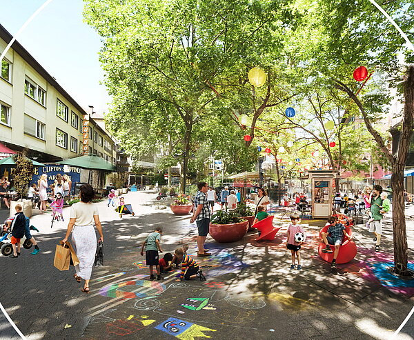 Da die Neuverteilung des Straßenraums Platz für alle schafft, lädt die Stadt insbesondere Anwohnerinnen und Anwohner, anliegende Gewerbetreibende, interessierte Privatpersonen, Institutionen und Vereine ein, neue und kreative Nutzungen auf den freigewordenen Verkehrsflächen anzumelden. Dies können Aktivitäten und Veranstaltungen sein, vom Nachbarschaftspicknick bis zum Kleinkonzert. Ausstellungen oder Lesungen sind ebenso denkbar wie Kunstinstallationen, Performance, Spiel- oder Bewegungsangebote für Kinder und Erwachsene. Hier geht’s zum Formular Veranstaltungsanmeldung.