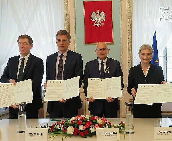 Am vergangenen Dienstag unterzeichneten Vertreter der Städte Karlsruhe, Nancy, Münster und Lublin eine Erklärung zur Zusammenarbeit mit ukrainischen Städten. Das gemeinsame Bekenntnis zur Unterstützung wurde durch einen offiziellen Akt im Krontribunal des Lubliner Rathauses begleitet.