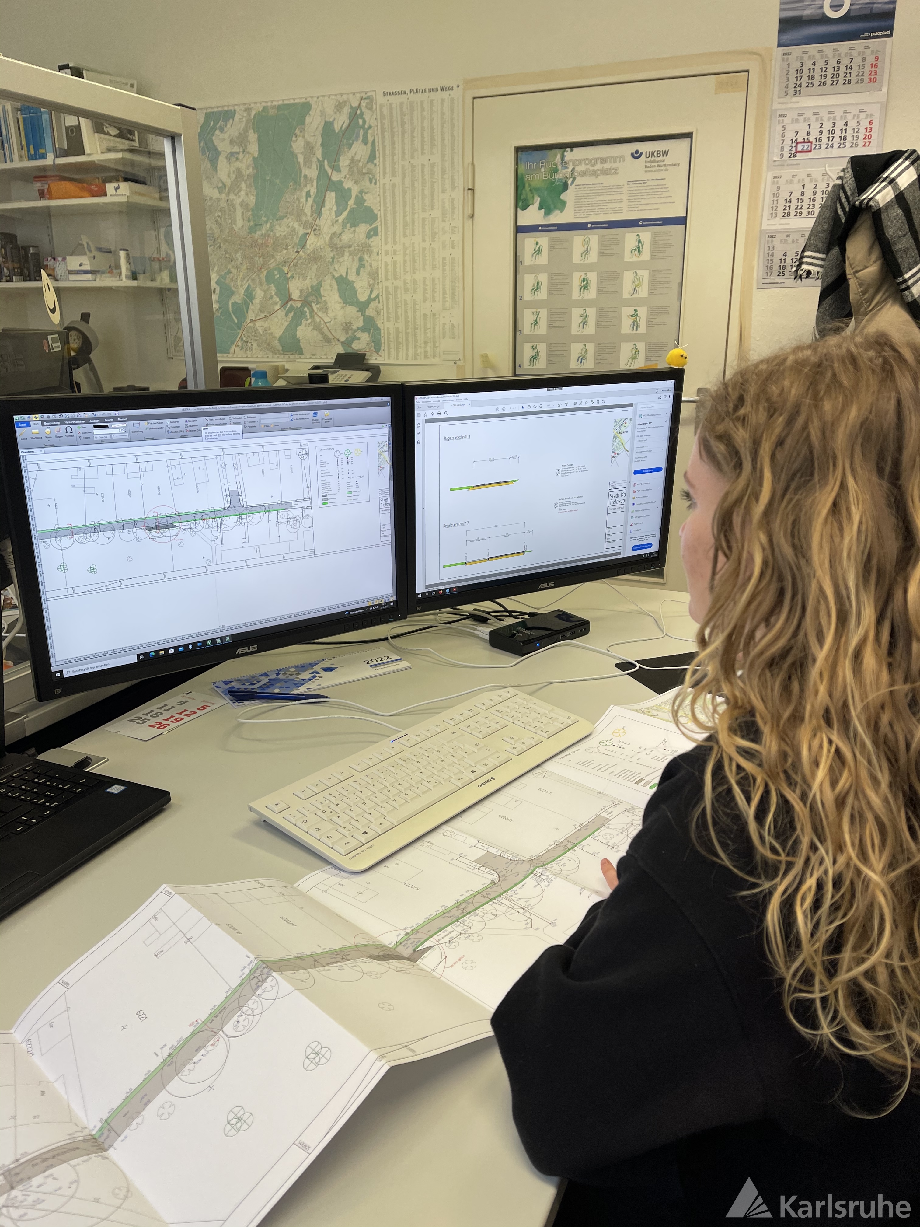 Als Bauzeichnerin/Bauzeichner mit dem Schwerpunkt Tiefbau bist du Teil des Planungsteams beim Tiefbauamt und wirst zum Profi in unterschiedlichen zeichnerischen Arbeiten in den Bereichen Straßenwesen, Stadtentwässerung und Wasserbau ausgebildet. So erstellst du Konstruktionspläne mithilfe von computerunterstützten Zeichenprogrammen (CAD), unterstützt die Bauleiterinnen und Bauleiter in ihrer Arbeit, lernst verschiedene Baustoffe, Bauweisen und Bauelemente kennen und machst manchmal auch einen Ausflug auf die aktuelle Baustelle. Als Special bieten wir dir während deiner Ausbildung die Möglichkeit, neben dem Tiefbauamt auch weitere Ämter der Stadt Karlsruhe durch verschiedene Praktika kennenzulernen.