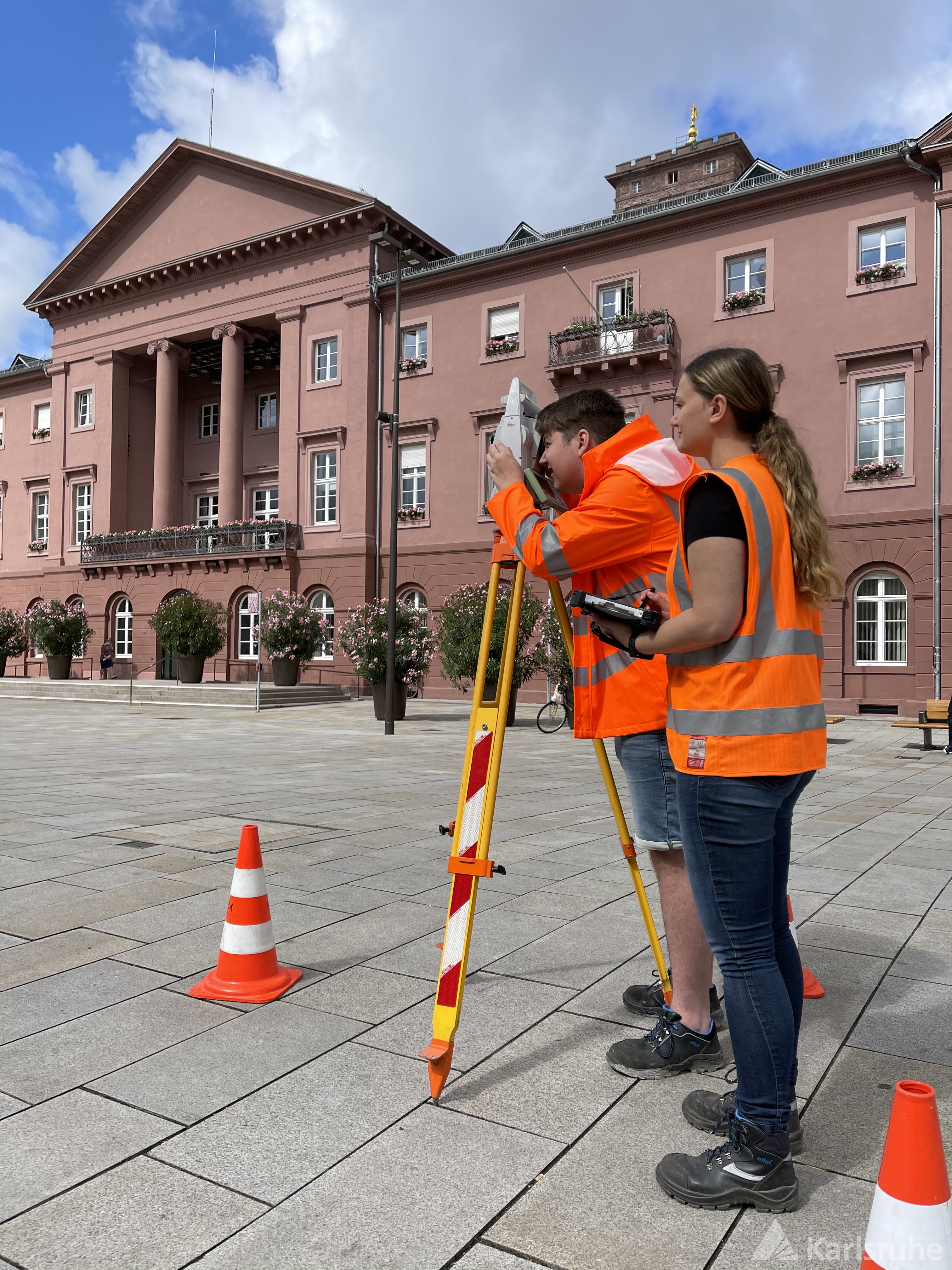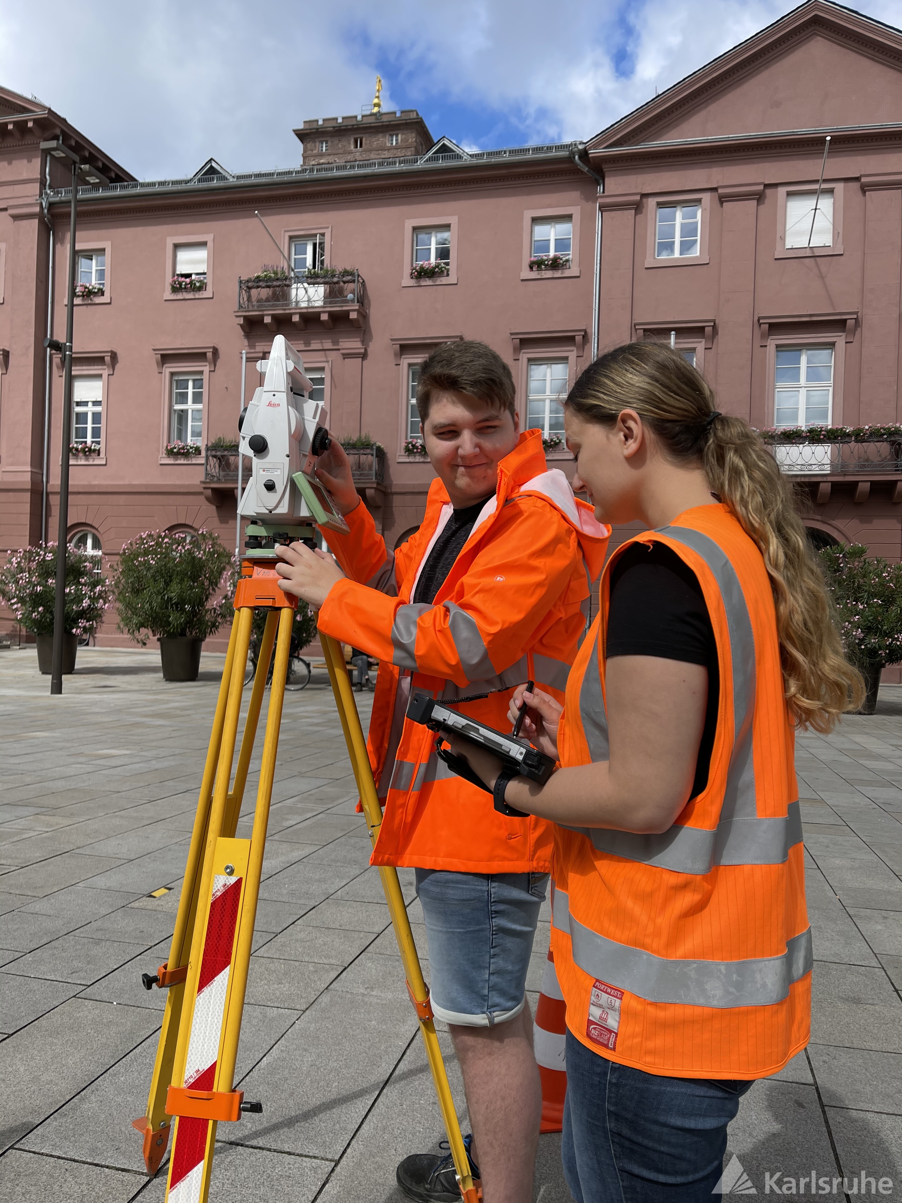 Deine vielfältigen und abwechslungsreichen Aufgaben decken das gesamte Gebiet der Vermessungstechnik ab. So verbringst du die meiste Zeit im Freien und führst mit verschiedenen Geräten -vom Nivelliergerät bis zum GPS- Vermessungen im Gelände durch, erfasst topografische Gegebenheiten, wie markante Höhenpunkte, den Verlauf von Gewässern und Straßen oder die Umrisse von Ortschaften zur Aktualisierung der städtischen Kartenwerke und steckst Grundstücksgrenzen ab. Deine vor Ort gemessenen Daten übergibst du zur Auswertung und Weiterverarbeitung überwiegend an die*den Geomatiker*in.