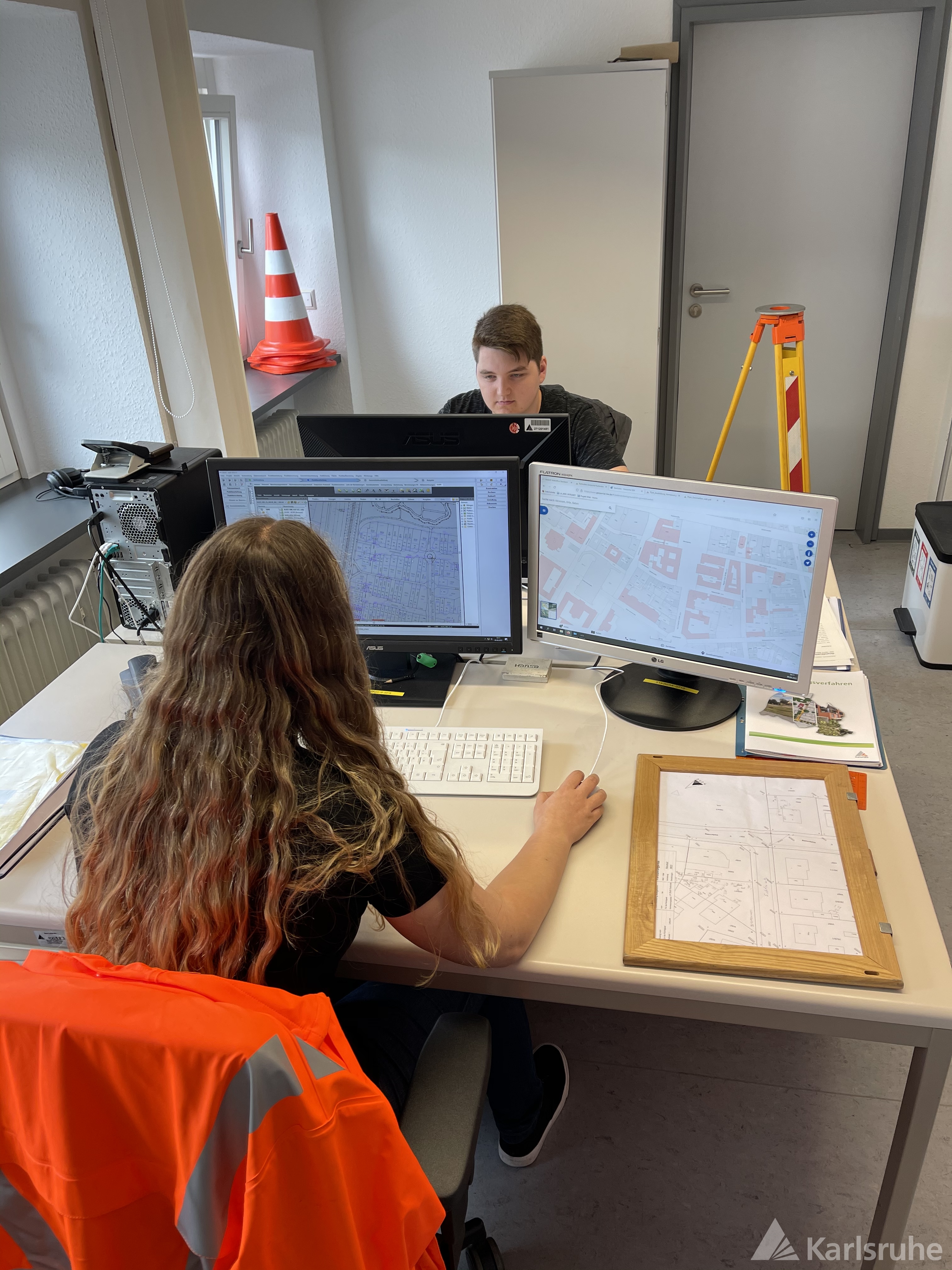 Kleinere Datenverarbeitungen nimmst du im Büro selbst vor. Du wertest beispielsweise Lage- und Höhenmessungen aus und erzeugst durch grafische Datenverarbeitung (CAD) neue Karten und Pläne oder ergänzt bereits vorhandene.
