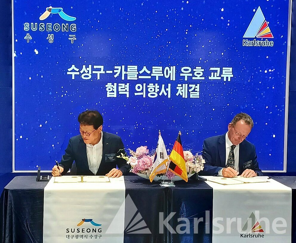 Mit der Unterzeichnung einer Vereinbarung durch Kulturbürgermeister Dr. Albert Käuflein und Bürgermeister Dae-Kwon Kim, der an der Spitze der südkoreanischen Stadt Suseong-gu steht, wurde die Zusammenarbeit beider Städte im Juli 2023 erstmals schriftlich festgelegt.