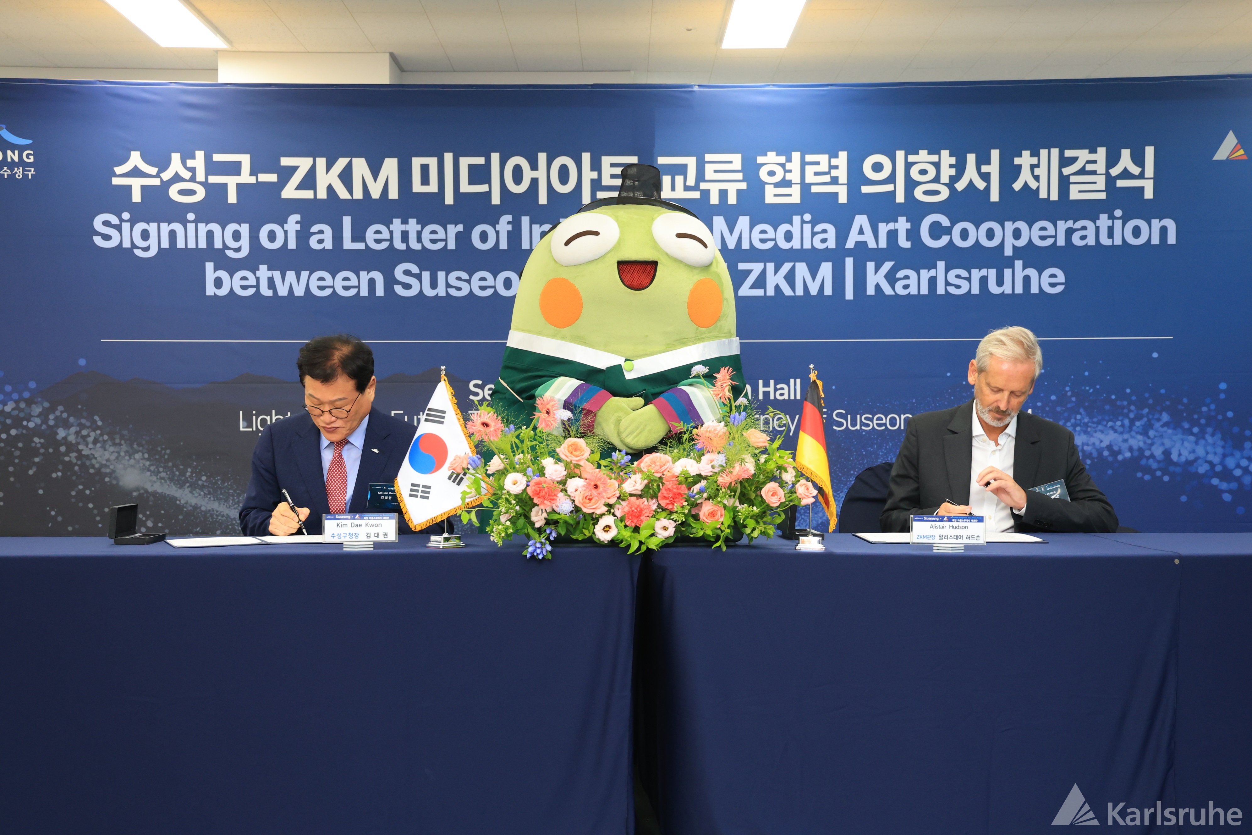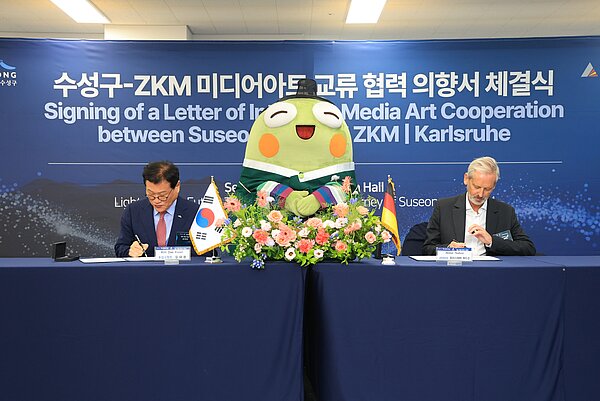 Bürgermeister Dae-Kwon Kim und ZKM-Vorstand Alistair Hudson unterzeichneten dabei einen „Letter of Intent“ über eine künftige Zusammenarbeit. In Suseong-gu soll ein Medienmuseum nach Vorbild des ZKM entstehen. Das ZKM wird dabei unterstützen. Mit der Kunsthalle wie zuvor schon mit der Städtischen Galerie wurde ein Austausch von Werken für Ausstellungen verabredet.