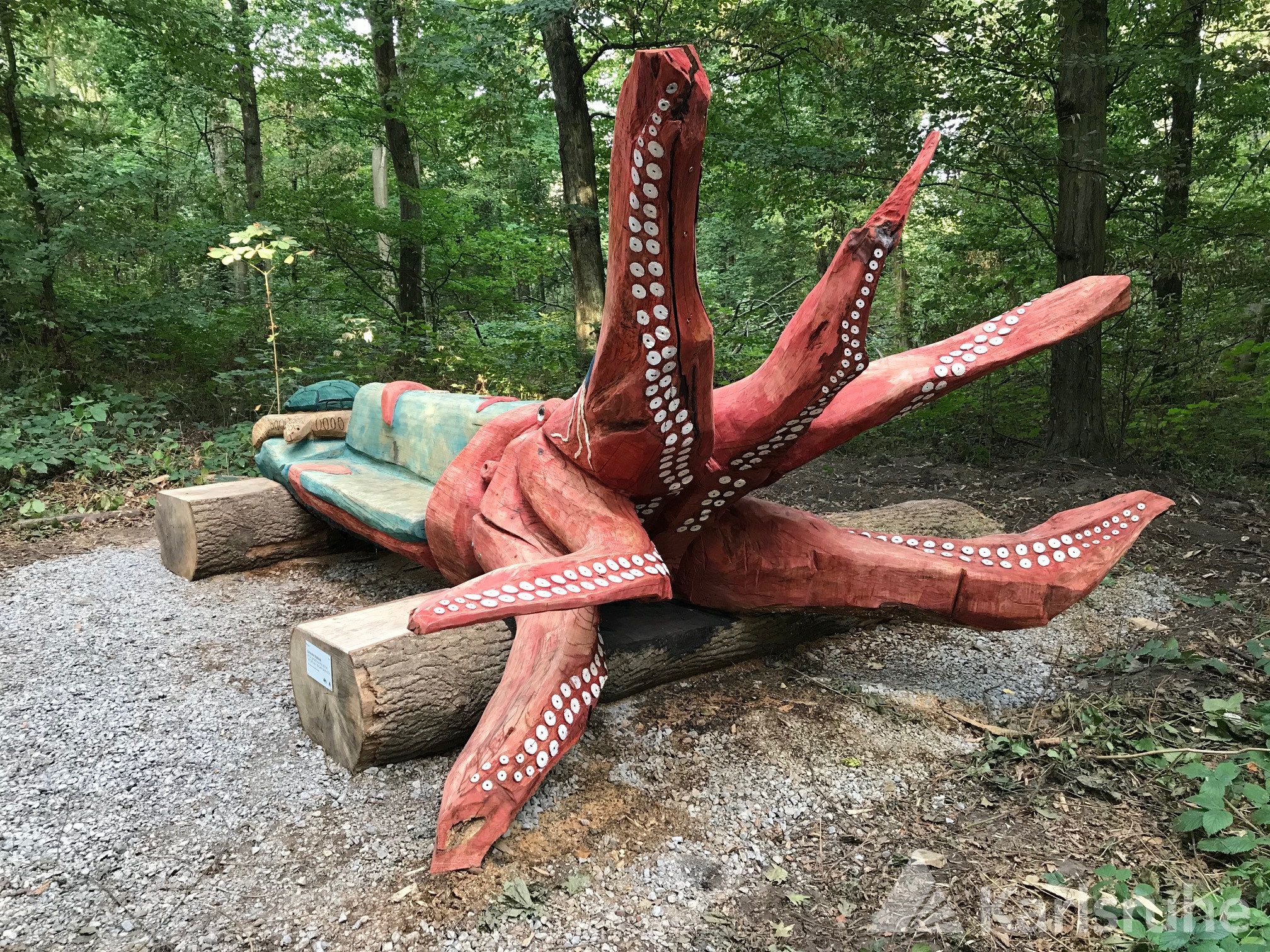 Die Karlsruher Waldbänke laden alle Waldbesuchenden zum Verweilen, Durchatmen und Genießen ein. Oft stehen sie an besonders schönen Plätzen – mit weitem Blick ins Grün, an stillen Wegen oder dort, wo das Licht zwischen den Bäumen tanzt. Mit viel Engagement und Liebe zum Detail werden die Bänke von unseren Forstwirtinnen und Forstwirten sowie von unseren Auszubildenden gefertigt. Dabei entstehen kleine Kunstwerke, wie etwa eine aus einem Baumstamm samt Wurzel geschnitzte Bank in Form einer Krake.